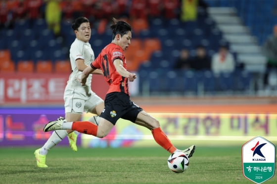 득점 장면도 백미였다. 강원 중앙 미드필더 김대우가 골문으로 쇄도하는 양민혁을 향해 절묘하게 침투 패스를 찔렀다. 문전 가까이 있던 양민혁은 슈팅 각도가 없었지만 좁은 각 사이로 강하게 오른발로 차넣어 골망을 흔들었다.