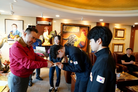 윤홍근 회장은 "선수들이 태극기를 달고 메이저 국제대회 남자 싱글 종목 한국 선수 첫 우승과 세계선수권대회 입상이라는 좋은 소식을 전해오니 매우 자랑스럽다"며 '대한민국 빙상의 위상을 전 세계에 널리 알릴 수 있었다는 것이 기쁘다"고 전했다. 이어 "다가오는 2026 밀라노 코르티나 동계올림픽에서도 좋은 성적을 거둘 수 있기를 바란다"고 선수들을 격려했다.