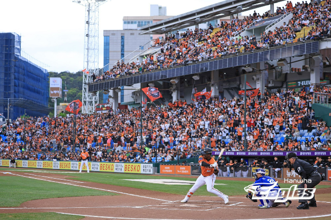 올 시즌 열기는 어느 때보다도 뜨겁다. 10개 구단이 전반적으로 뜨거운 인기를 끌고 있는데 그 중에서도 가장 돋보이는 건 한화다. 올 시즌 대전에서 열린 29경기 중 8경기를 제외한 21경기가 매진됐다. 지난해 총 56만 6785명, 경기 평균 7764명을 기록했는데 올 시즌엔 1만 1523명을 기록 중이다. 지난해보다 48% 관중이 증가한 셈이다.
