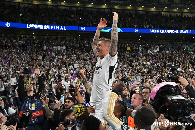 크로스는 2019년 레알 유니폼을 입었다. 모드리치는 2012년 토트넘(잉글랜드)에서 레알로 이적했다. 레알에서의 마지막도 UCL 우승으로 마무리했다. 이제 크로스는 독일 대표팀으로 유로2024를 치른 뒤 선수 생활의 마침표를 찍는다.