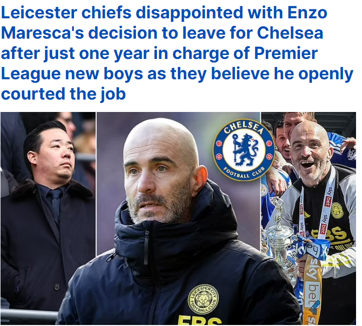 레스터는 공식 성명을 통해 "엔조(마레스카)는 한 시즌 동안 구단 기반을 쌓았다"라며 "하지만 그는 레스터에 남길 원하지 않았다. 이에 구단은 실망을 표한다"라고 노골적으로 마레스카 감독 이적을 비난하기도 했다.