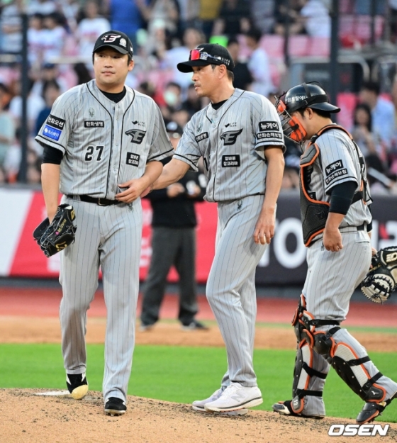 이렇듯 카리스마 넘치던 김 감독이 지난 3일 한화 지휘봉을 잡은 후 눈에 띄는 장면들이 나왔다. 경기 중 선수들과 이야기를 나누고, 제스처도 컸다. 지난 5일 경기에서 최재훈이 두 차례 몸에 맞는 볼로 나가자 그라운드로 나와 그를 달래주기도 했다.