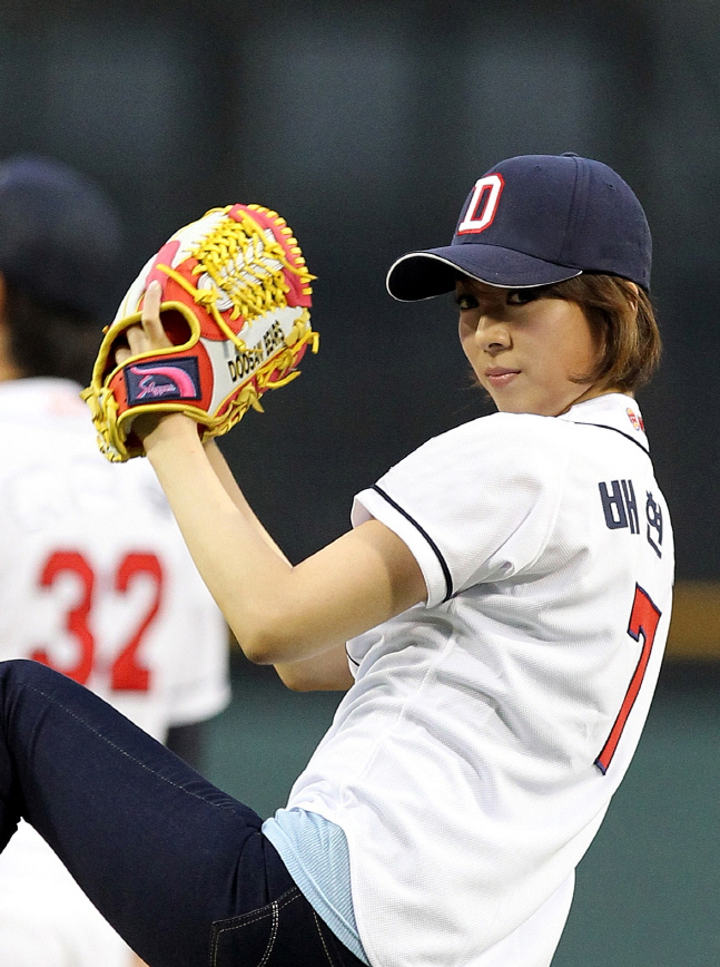 배현진 의원은 MBC 아나운서로 재직하던 2010년 두산베어스의 승리기원 시구를 진행한 바 있다.