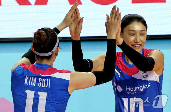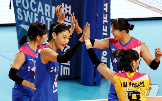 김연경의 팀 대한민국과 양효진의 팀 코리아가 8일 서울 송파구의 잠실종합운동장 실내체육관에서 열린 KYK인비테이셔널 김연경 국가대표 은퇴경기에서 맞붙었다. 국가대표 은퇴경기에서 김연경의 팀 대한민국은 팀 코리아를 꺾었다.