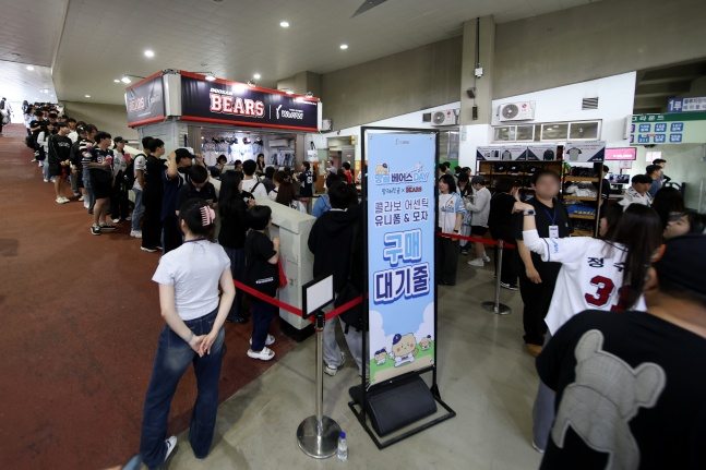 가장 먼저 도착한 팬의 경우 저녁부터 많은 비가 내렸음에도 전날(7일) 21시부터 텐트를 치고 기다린 것으로 알려졌다. 무려 16시간의 기다림을 선택한 30대 두산팬 A씨는 "1등으로 서고 싶어서 경기 전부터 와 있었다. 많은 상품 중에서도 유니폼과 머리띠를 꼭 구매하고 싶었다. 비가 오는 등 날씨가 궂었지만, 텐트에서 또 야외 의자에서 밤새 기다렸다. 망곰 유니폼을 입고 오늘 KIA전도 열심히 응원하겠다. 앞으로도 다양한 이벤트가 많아졌으면 좋겠다"고 소감을 밝혔다.
