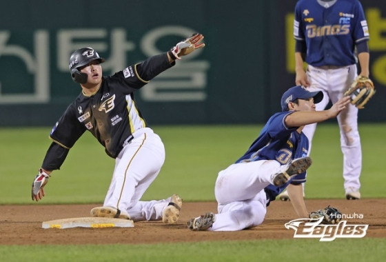 하지만 최재훈이 몸에 맞는 볼로 1루에 나갔고, 이도윤의 1루 땅볼로 주자들이 한 베이스씩 진루했다. 여기서 9번 이원석이 중견수 앞으로 굴러가는 안타를 기록해 주자 두 명이 모두 홈을 밟았다. 이 과정에서 2루까지 진루한 이원석이 황영묵의 좌전 적시타로 득점을 올리며 한화는 3-0으로 리드했다.