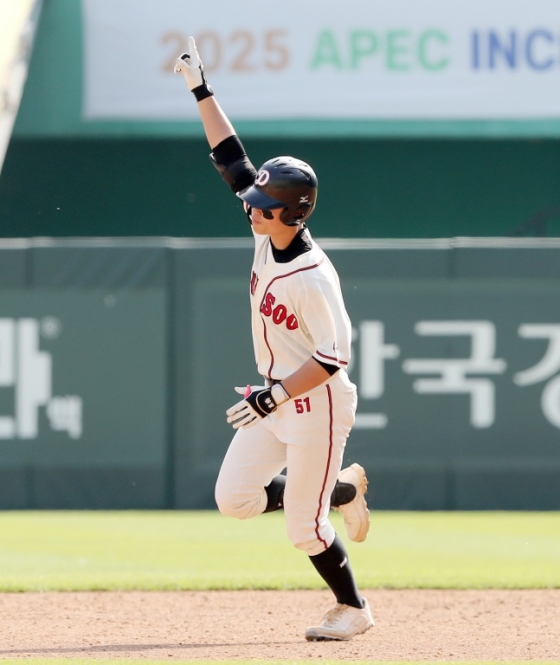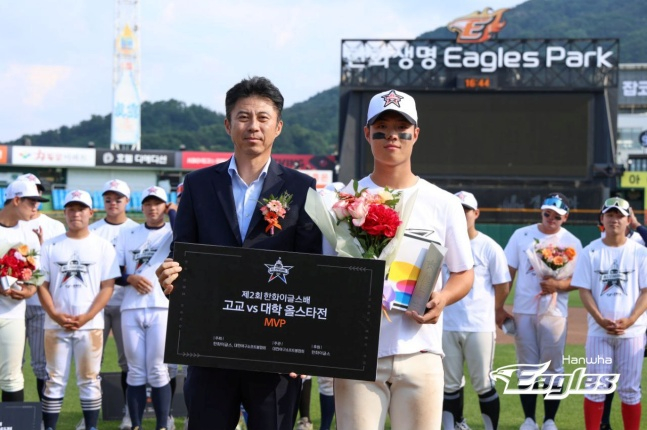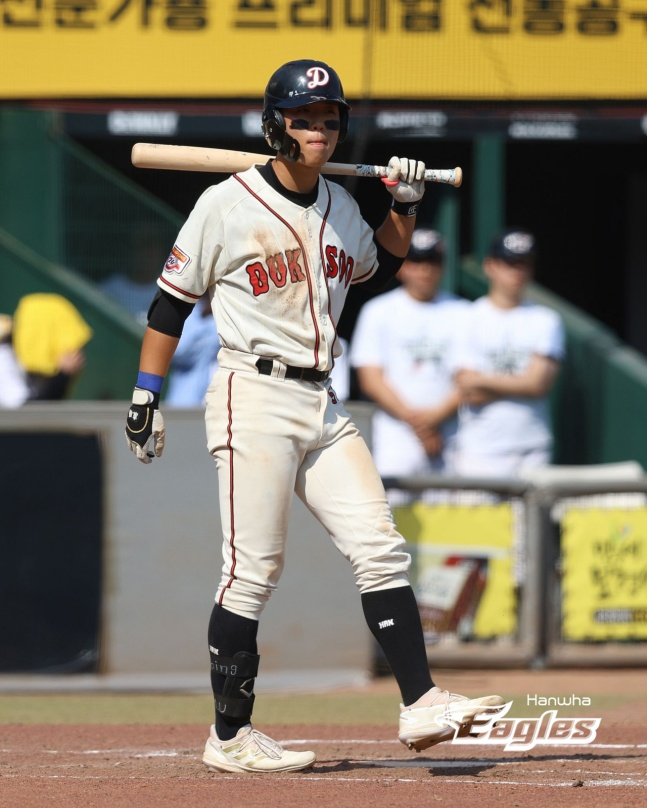 그와 동시에 고교 팀의 4번 타자이기도 했다. 올해 KBO 신인드래프트에 지명될 가능성이 높은 유망주가 대거 참여한 대회에서 2학년생이 4번 타자로 선발 출전한다는 건 의미심장했다. 한 KBO 구단 스카우트는 "올해 신인드래프트는 전체적으로 투수들이 좋지만, 야수들도 지난해보다 좋아 포지션별로 상위 라운드를 노릴 선수들이 있다"고 말할 정도.