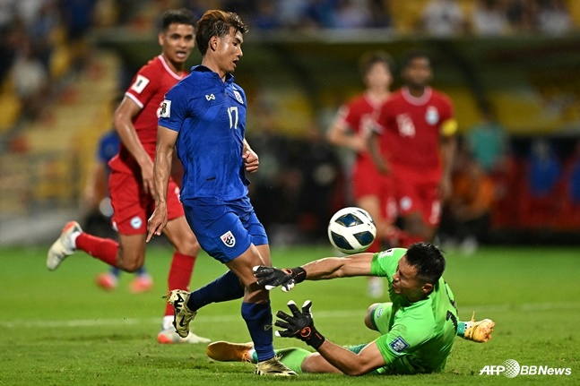 하지만 골 결정력이 번번이 아쉬웠다. 축구 통계 전문 매체 '풋몹'에 따르면 태국은 전반전에만 슈팅 12개를 몰아쳤다. 큰 기회는 두 번 있었지만, 단 한 번밖에 살리지 못했다. 전반전은 태국이 1-0으로 리드한 채 끝났다.