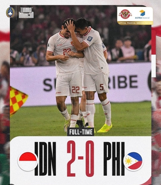인도네시아는 11일(한국시간) 인도네시아 자카르타의 겔로라 붕 카르노 스타디움에서 열린 2026 국제축구연맹(FIFA) 북중미 월ㄷ컵 아시아 지역 2차 예선 F조 최종 6차전에서 필리핀에 2-0으로 승리했다.