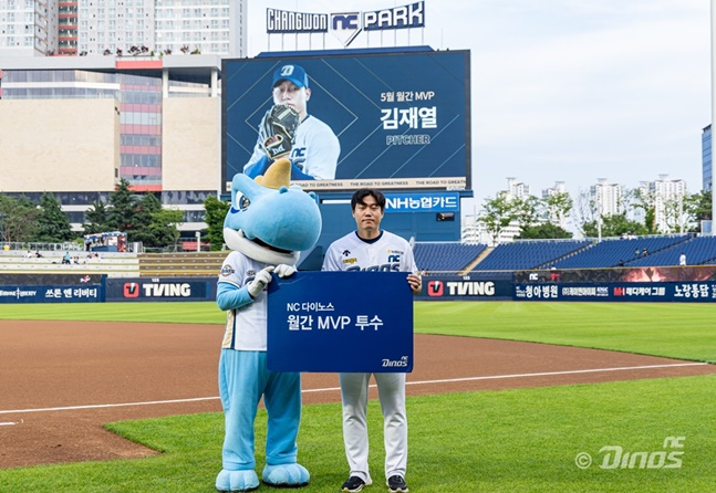 한편 투수 부문 MVP는 김재열(28)이 차지했다. 그는 5월 13경기, 14⅓이닝 동안 1승 1패 1홀드 16탈삼진 3실점 평균자책점 1.88을 기록했다. 그는 "감독님 코치님께서 먼저 기회를 주셔서 이런 큰 상을 받은 것 같다. 이기는 경기에 나가서 잘 막은 것도 좋은 결과를 얻은 계기인 것 같다"며 "팀에 어떤 상황에서든 필요한 곳에 나가서 힘차게 던지겠다. 우리 다이노스 팬들에게 많은 사랑을 받는 선수가 되도록 노력하겠다"고 말했다.