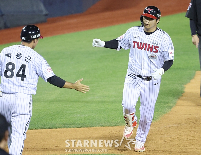 스포츠야구[포토] 문보경 '굳히기 솔로포'발행 : 2024.06.14 ・ 21:16수정 : 2024.06.16 ・ 13:09잠실=김진경 대기자광고삭제'2024 신한 SOL 뱅크 KBO리그' LG-롯데 경기가 14일 서울 잠실야구장에서 열렸다.LG 문보경이 8회말 무사에서 좌월 1점 홈럼을 날린 후 홈인하고 있다.LG 트윈스는 롯데와의 주말 홈 3연전에서 승리 기원 시구 및 '잔망루피 데이'를 진행한다. '전망루피'는 2021년 신입 응원단원으로 합류해 팬들의 사랑을 받고 았다.<저작권자 © 스타뉴스, 무단전재 및 재배포 금지>프로야구LG롯데트윈스자이언츠엔스추천 기사김진경 대기자기자홈좋아요 스포츠-야구의 인기 급상승 뉴스스포츠-야구의 최신 뉴스
