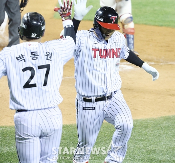 스포츠야구[포토] 문보경 '승부는 여기서 끝'발행 : 2024.06.14 ・ 21:18수정 : 2024.06.16 ・ 13:09잠실=김진경 대기자'2024 신한 SOL 뱅크 KBO리그' LG-롯데 경기가 14일 서울 잠실야구장에서 열렸다.LG 문보경이 8회말 무사에서 좌월 1점 홈럼을 날린 후 홈인하고 있다.LG 트윈스는 롯데와의 주말 홈 3연전에서 승리 기원 시구 및 '잔망루피 데이'를 진행한다. '전망루피'는 2021년 신입 응원단원으로 합류해 팬들의 사랑을 받고 았다.<저작권자 © 스타뉴스, 무단전재 및 재배포 금지>프로야구LG롯데트윈스자이언츠엔스추천 기사김진경 대기자기자홈좋아요 스포츠-야구의 인기 급상승 뉴스스포츠-야구의 최신 뉴스