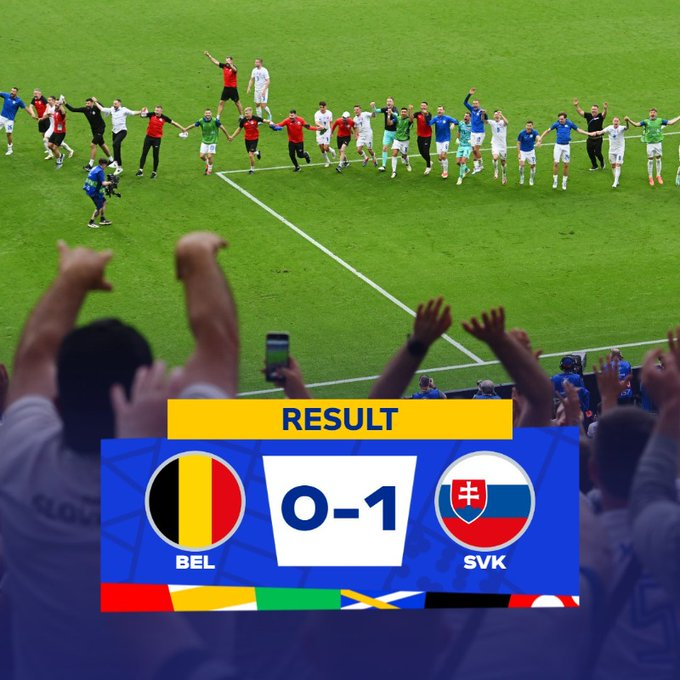벨기에는 18일(한국시간) 독일 프랑크푸르트의 프랑크푸르트 아레나에서 열린 유로 2024 E조 1차전에서 슬로바키아에 0-1로 졌다.