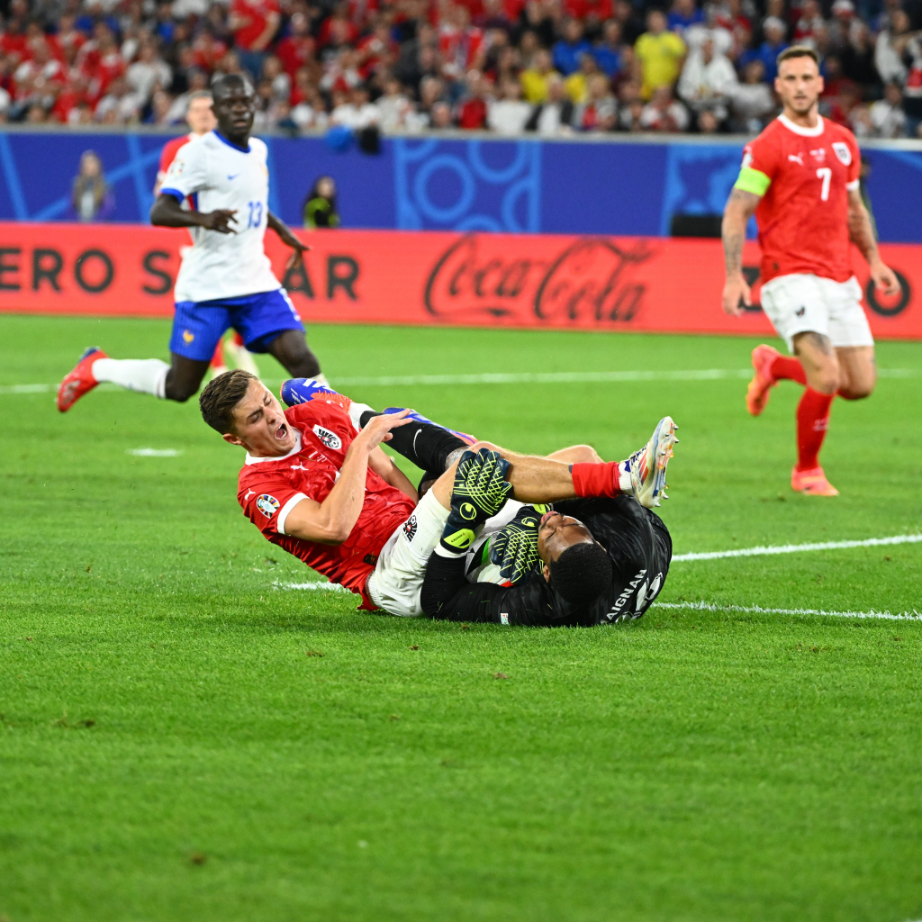 음바페는 오스트리아전 페널티 박스 안에서 헤더 슈팅을 시도하다 상대 선수의 어깨와 부딪혔다. 음바페는 코피를 흘리기 시작했고, 오스트리아는 경기를 계속 재개했다.