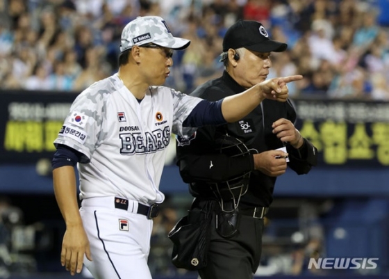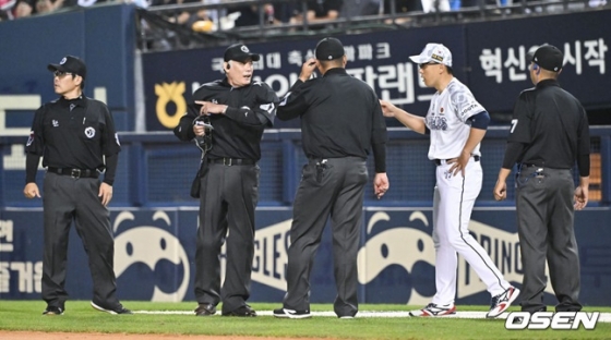 그러자 두산 벤치에서 그라운드로 뛰쳐나왔다. 이승엽 감독이었다. 이미 비디오판독 결과가 나왔음에도 항의를 하는 듯한 모습이었다.