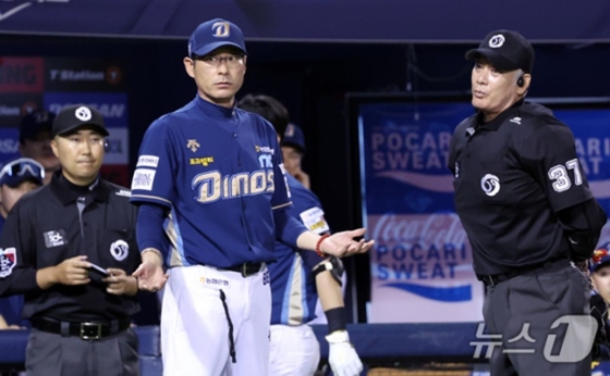 비디오판독 결과가 이미 나온 뒤 이어진 이승엽 감독의 어필로 판정이 뒤바뀌자 이번엔 강인권 NC 감독이 더그아웃을 박차고 나왔다. NC 구단에 따르면 강 감독은 이미 내려진 비디오판독의 결과를 다시 뒤집을 수 있느냐고 항의했지만 심판진에선 비디오판독 결과를 따르는 게 원칙적으로 맞지만 너무도 명확한 상황이었기에 번복을 하게 됐다는 설명을 했다는 것이다.