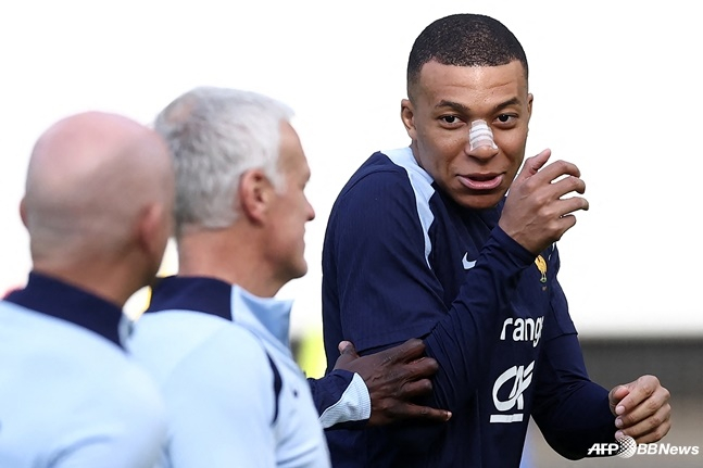 디디에 데샹(56) 프랑스 감독은 오스트리아와 경기 후 기자회견에서 "음바페의 상태는 좋지 않다. 의료진이 계속 함께하고 있다"라며 "코가 상대 어깨와 강하게 충돌했다. 정밀 검사가 필요하다. 프랑스에 매우 불행한 일"이라고 말한 바 있다.
