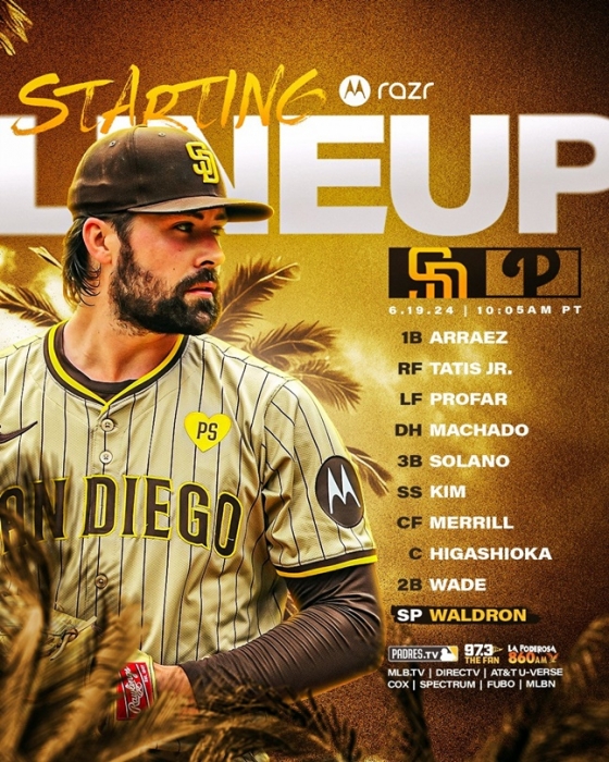 샌디에이고는 이날 루이스 아라에즈(1루수)-페르난도 타티스 주니어(우익수)-주릭슨 프로파(좌익수)-매니 마차도(지명타자)-도노반 솔라노(3루수)-김하성(유격수)-잭슨 메릴(중견수)-카일 히가시오카(포수)-타일러 웨이드(2루수) 순으로 타선을 꾸렸다. 선발 투수는 맷 왈드론.