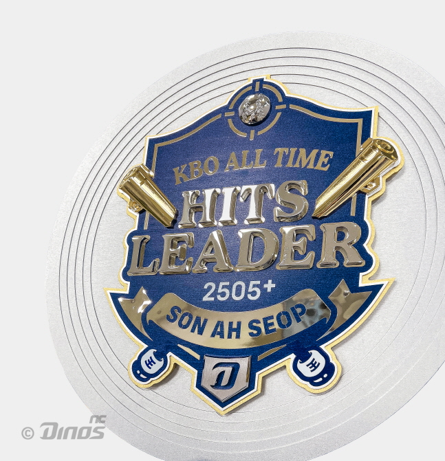 손아섭에게 전달된 상패는 구단에서 특별히 제작한 지름 35㎝의 쟁반형 트로피로, 기록 달성을 기념해 숫자 2505가 엠블럼으로 삽입됐다. NC 구단은 "대한민국 최고의 교타자라는 의미에서 야구 배트와 소총을 결합해 X자로 교차해 표현했고 배트 노브 부분에는 손아섭 배트의 상징인 테이핑과 왕(王) 표시를 적었다"고 설명했다.