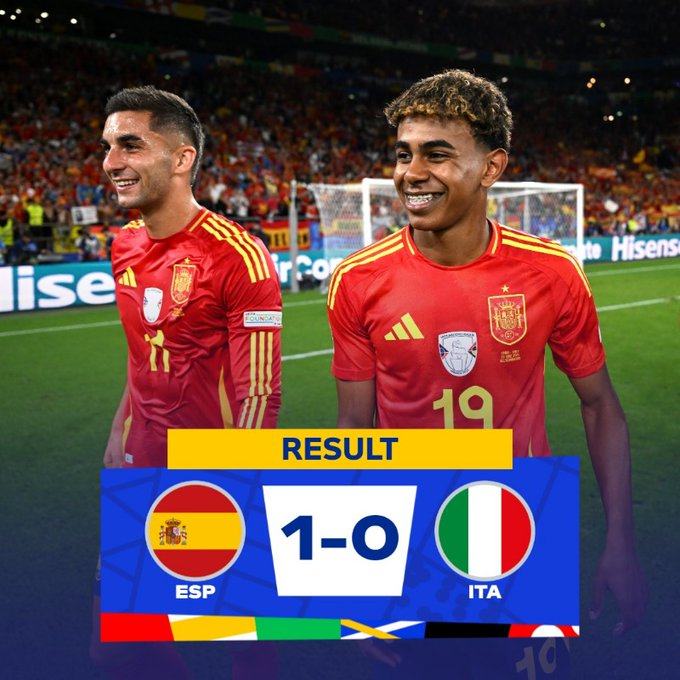 루이스 데 라 푸엔테 감독의 스페인은 이탈리아전 4-3-3 포메이션을 썼다. 니코 윌리엄스(빌바오 아슬레틱), 알바로 모라타(아틀레티코 마드리드), 라민 야말(FC바르셀로나)이 스리톱으로 나왔다. 파비안 루이스(파리 생제르망), 로드리(맨체스터 시티), 페드리(바르셀로나)가 중원을 구성했다.