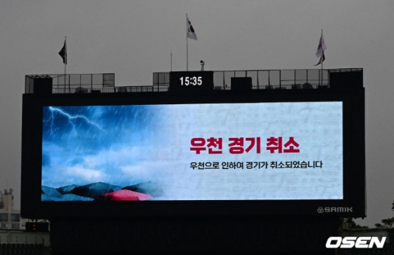 뒤이어 잠실구장에서 열릴 예정이었던 LG 트윈스와 KT 위즈 경기도 오후 3시 37분 취소가 결정됐다.