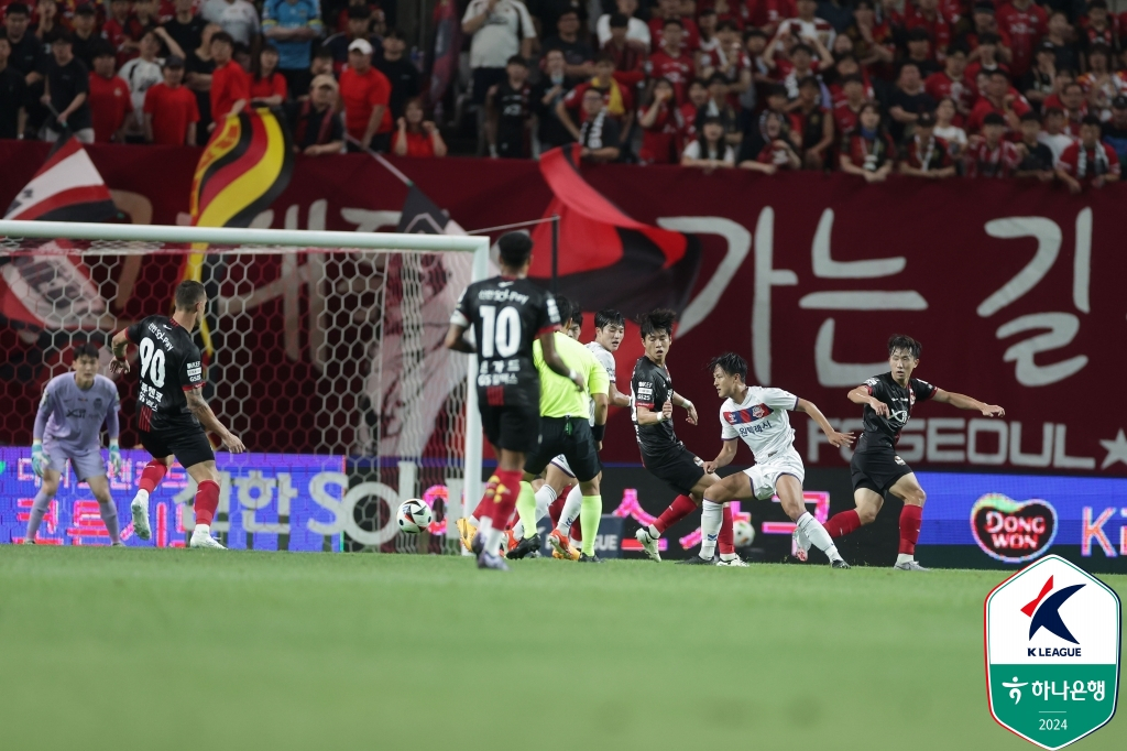 서울은 경기 초반부터 공격적으로 나왔다. 울산HD전에 이어 두 경기 연속 주장 완장을 찬 린가드를 필두로 패스를 양쪽 측면으로 전개했다. 이승모와 류재문은 중거리 슈팅을 아끼지 않았다.