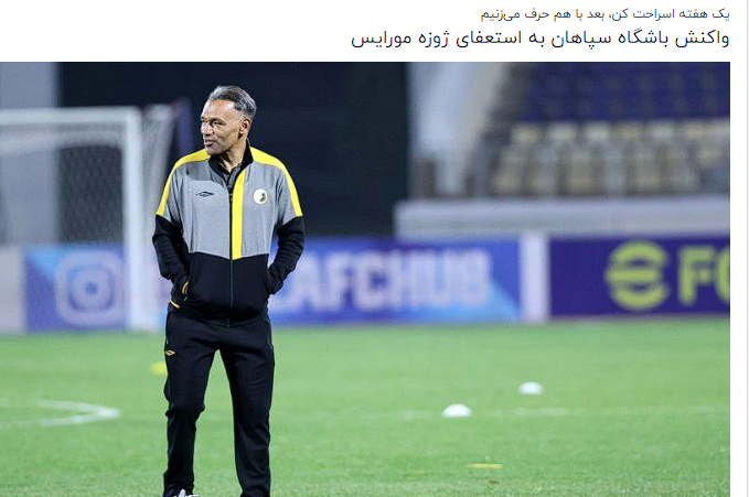중동 매체 '타라프다리'는 25일(한국시간) "모라이스 감독의 소식은 세파한 팬들을 충격에 빠뜨렸다"라며 "모라이스 감독은 다음 시즌 명단을 해외 휴가 중 세파한에 사직서를 제출했다"라고 보도했다.