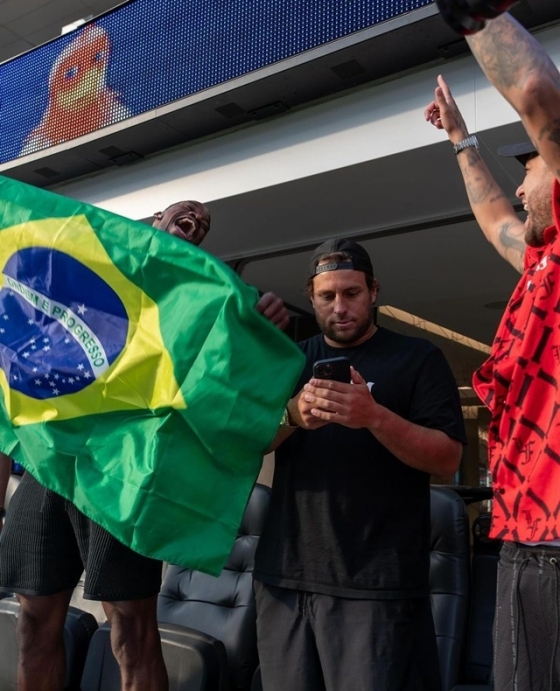 네이마르는 25일(한국시간) 자신의 SNS에 이날 열린 2024 미축구선수권대회(코파아메리카 2024) 조별리그 D조 1차전 브라질-코스타리카 경기를 직관하는 사진을 업로드했다. 혼자는 아니었다. 네이마르는 NBA 정상급 선수 버틀러와 함께 브라질 경기를 지켜봤다. 버틀러는 자신의 조국이 아닌데도 브라질 국기를 들고 열광적으로 응원했고, 네이마르는 이를 보며 환한 미소를 지었다.