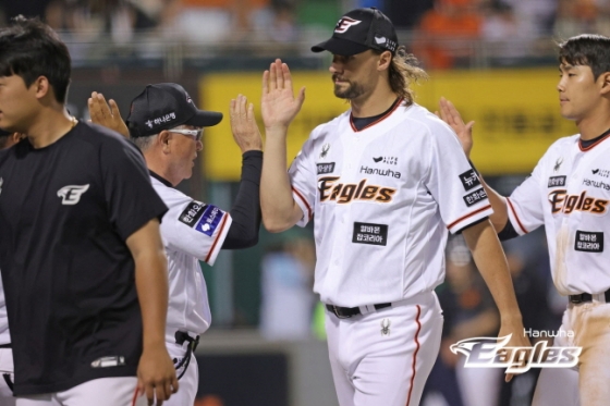 산체스의 팔꿈치 부상 이탈로 지난 17일 한화와 계약 기간 6주에 총액 10만 달러(약 1억 3900만원)에 사인한 와이스가 완벽투로 김경문 감독을 흐뭇하게 했다.