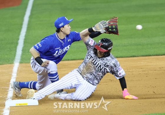 1사 1,2루 위기 상황. 삼성은 김재윤을 등판시켰다. 그러나 삼성으로선 아쉬운 장면이 또 한 번 반복됐다. 2루 주자 김대원이 빠르게 스타트를 끊었고 오스틴도 2루를 향해 내달렸다. 더블 스틸 성공. 단타 하나면 경기를 내줄 수 있는 상황에서 병살 플레이를 노리며 다시 자동 고의4구를 택할 수밖에 없었다. 김범석이 볼카운트 1-2에 몰렸지만 3루수 김영웅이 땅볼 타구를 놓치며 끝내기 실책으로 뼈아픈 패배를 내줬다.
