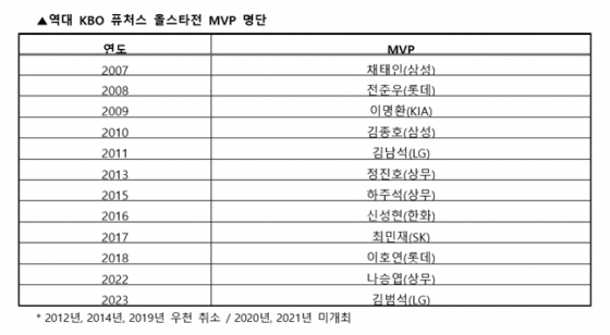 올해부터는 퓨처스 올스타전에도 베스트 퍼포먼스상이 신설돼 선수들의 개성 넘치는 분장과 퍼포먼스를 통해 더욱 다채롭고 흥미로운 경기가 진행될 전망이다. 수상자에게는 퓨처스리그 타이틀 스폰서인 메디힐 후원을 통해 상금 100만원과 부상이 제공된다.
