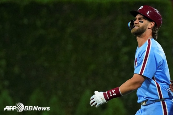 올해 내셔널리그 MVP 유력 후보 브라이스 하퍼(32·필라델피아 필리스)가 햄스트링을 부여잡고 쓰러졌다.