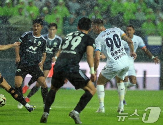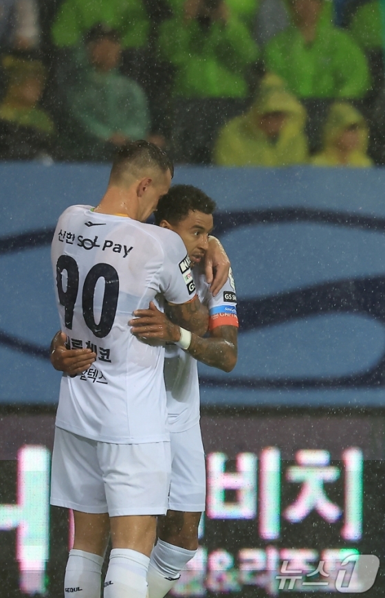 서울이 추가골을 성공시켰다. 빗줄기가 더욱 굵어진 전반 추가시간 일류첸코가 측면에서 올라온 크로스를 왼발 원터치로 한승규에게 내줬다. 이를 한승규가 지체 없이 슈팅으로 연결해 골망을 살랐다.