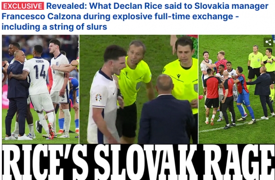 문제는 경기 종료 휘슬 후였다. 영국 매체 '데일리 메일'에 따르면 데클란 라이스(아스널)와 프란체스코 칼초나 슬로바키아 감독이 충돌했다. 매체는 "경기가 끝난 뒤 칼초나 감독은 라이스를 밀쳤다. 격양된 장면이 이어졌다"라고 설명했다.