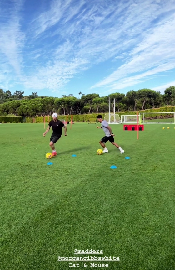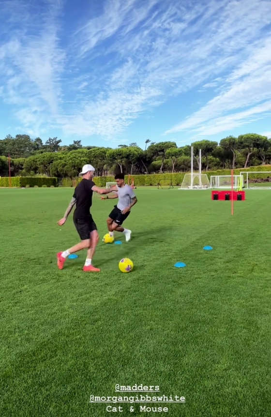토트넘 홋스퍼 제임스 매디슨(27)의 근황이 화제다. 영입 대상으로 지목된 모건 깁스 화이트(24·노팅엄 포레스트)와 훈련을 하는 모습이 포착됐다.