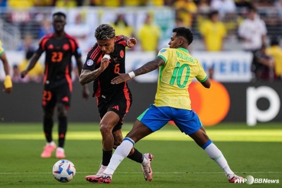 브라질은 3일(한국시간) 미국 캘리포니아의 리바이스 스타디움에서 열린 2024 코파 아메리카 D조 3차전에서 콜롬비아와 1-1로 비겼다.