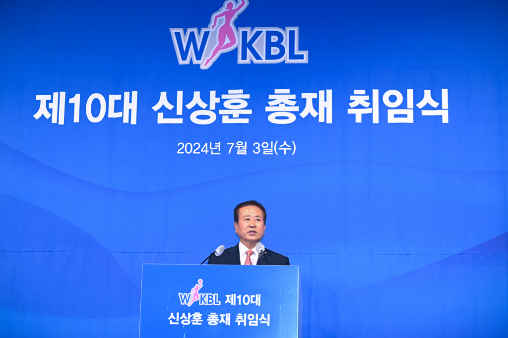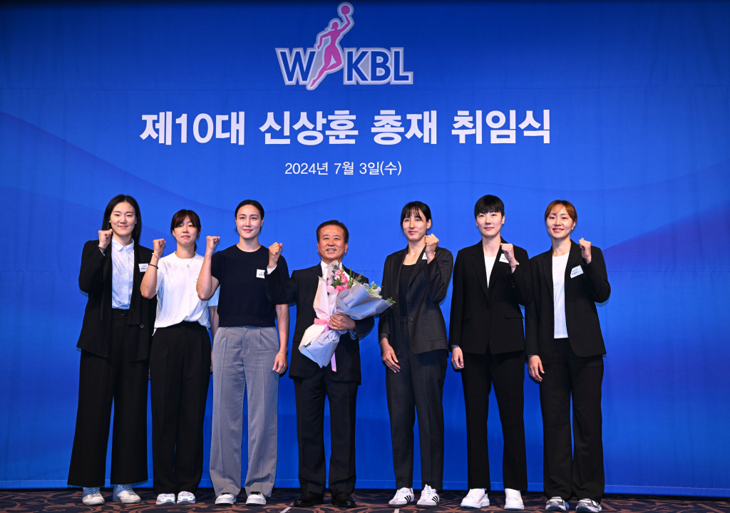 한국여자농구연맹(WKBL)은 3일 서울 강남구 호텔리베라 베르사이유홀에서 제10대 신상훈 총재 취임식을 개최했다. 권혁운 대한민국농구협회 회장, 이연택 전 장관 등 내빈과 배혜윤(삼성생명), 이경은(신한은행), 김단비(우리은행), 김정은(하나원큐), 박혜진(BNK), 염윤아(KB)까지 6개 구단 대표 선수들이 참석했다.