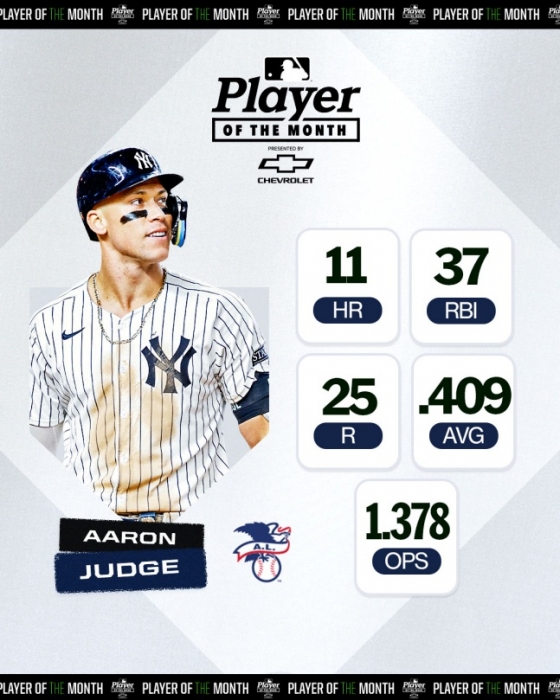 내셔널리그 소속의 브라이스 하퍼(32·필라델피아 필리스)와 아메리칸리그 소속의 애런 저지(32·뉴욕 양키스)는 5월에 이어 두 달 연속 이달의 선수를 수상했다. 내셔널리그와 아메리칸리그에서 두 명의 선수가 동시에 이달의 선수상을 두 달 연속 수상한 건 하퍼와 저지가 처음이다. 저지에게는 8번째, 하퍼에게는 4번째 이달의 선수상이다.