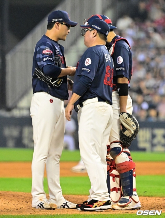 많은 투수들이 겪고 있는 공통적인 어려움이기도 하다. 김 감독은 "가운데 들어가면 칠 것 같으니까 유리할 때 조금 어렵게 갔다가 카운트가 불리하면 들어가는 공을 던지려고 하는 건데 그럴 떤지는 공이 그렇게 힘이 있는 공은 아니지 않나"라며 "어제 (양)의지에게 던진 공도 더 크게 떨어뜨려야 하는데 툭하고 (밋밋하게) 떨어졌다. 커브도 똑같다. 높게 던질 것인지 아예 낮게 던질 것인지 정해야 한다. 타자들에게 가장 잘 맞는 변화구가 스트라이크 존에서 무르팍으로 떨어지는 것이다. 선택을 잘해야 한다"고 강조했다.