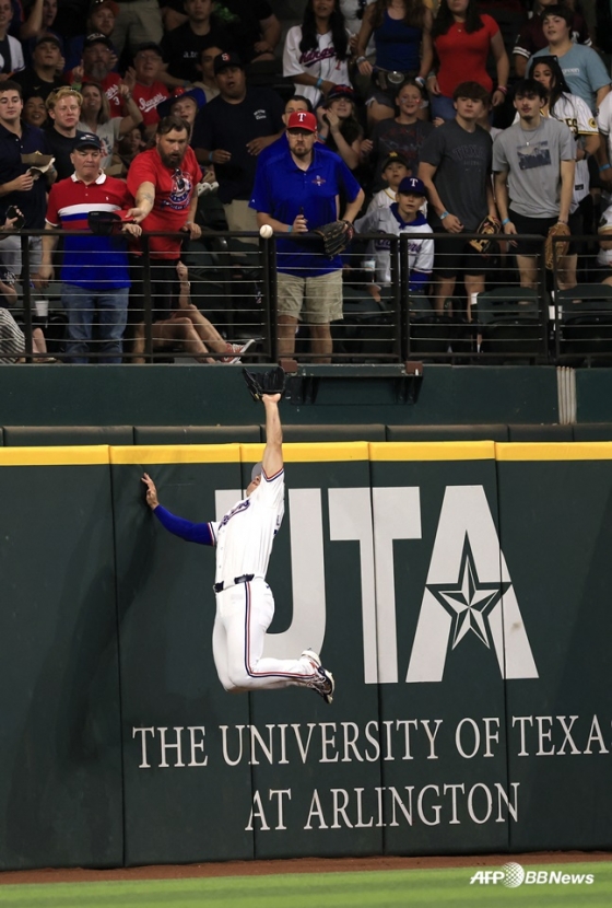 타구는 좌측 담장 쪽으로 계속 뻗어나갔다. 홈런이 될 것처럼 보였지만, 텍사스 신인 좌익수 와이엇 랭포드가 워닝트랙에서 낙구 지점을 포착한 뒤, 담장 앞에서 점프해 타구를 낚아챘다. 타구 속도 95.3마일(약 153.4km), 발사각 33도로 비행한 이 타구는 스탯캐스트에 따르면 메이저리그 30개 구장 중 27곳에서 홈런이 될 공이었다.
