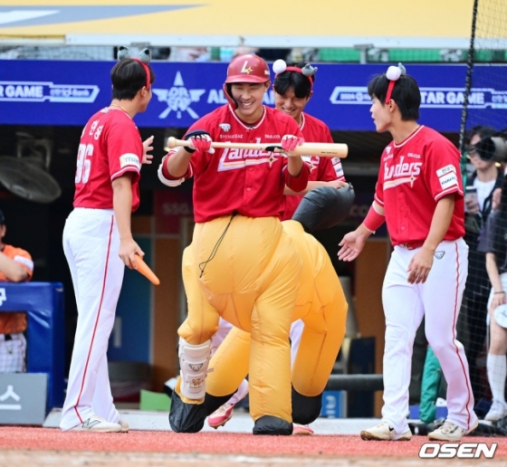 그밖에 '적토마' 이병규 삼성 퓨처스 감독의 아들로 '적토망아지'라 불리는 복부의 이승민(19·SSG 랜더스)이 말 분장을 하고 타석에 서 웃음을 자아냈다. 아들을 보기 위해 직접 현장을 찾은 아버지 이병규 퓨처스 감독도 연신 웃음을 터트렸다.