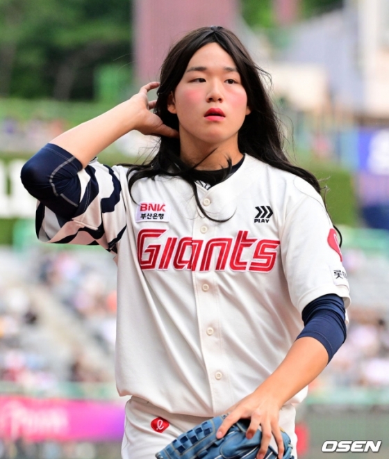 아직 1군 무대는 밟지 못한 그가 최근 전 구단 팬들에게 주목받는 일이 있었다. 지난달 9일 부산 SSG전에서 더블헤더 특별 엔트리로 1군에 깜짝 합류해 카리나에게 시구를 지도하게 된 것. 당시 카리나의 시구는 모처럼 부산을 찾은 특급 스타가 비로 촉박한 상황에서도 극적으로 성사돼 많은 화제를 낳았다.