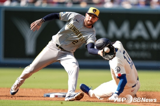 이때부터 오타니의 광속 질주가 시작됐다. 오타니는 윌 스미스의 타석 때 2루 도루를 시도했다. 스미스가 3구째를 건드려 땅볼을 만들었고 오타니는 2루에 먼저 들어갔다. 하지만 이 과정에서 스미스가 밀워키 포수 에릭 하스의 송구를 방해했다는 판정에 따라 스미스는 아웃, 오타니는 1루로 귀루할 수밖에 없었다.