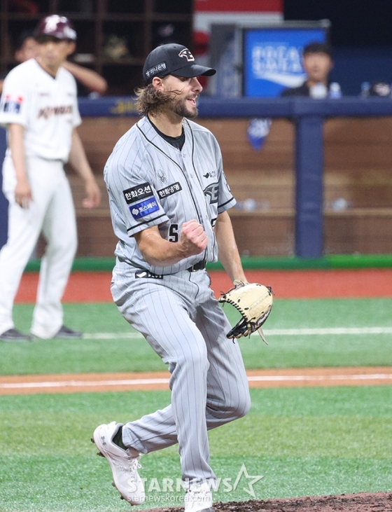 6회가 가장 인상적이었다. 첫 타자 이주형에게 3루타를 맞은 뒤 볼넷을 허용했고 2루수 실책으로 1점을 내줬다. 이어 송성문에게 2루타까지 맞고 3-2로 쫓겼으나 이후 압도적인 위기 관리 능력을 뽐냈다.