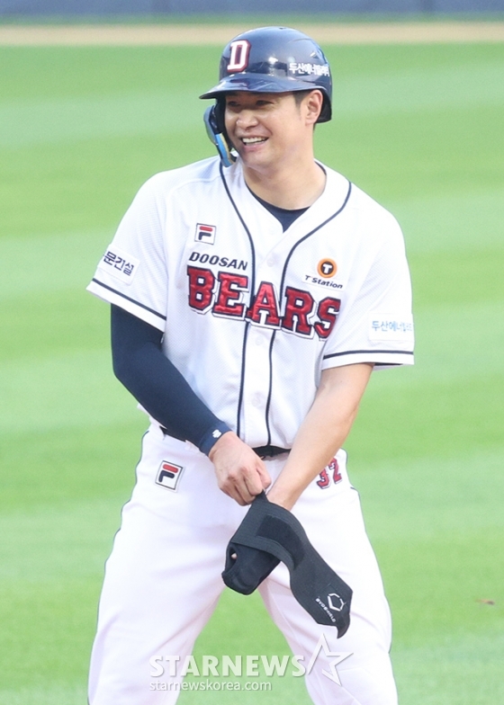 스포츠야구[포토] 김재환 '역전의 미소'발행 : 2024.07.12 ・ 19:23잠실=김진경 대기자'2024 신한 SOL 뱅크 KBO리그' 두산-삼성전이 12일 서울 잠실야구장에서 열렸다.두산 김재환이 1회말 2사 1,2루에서 우전안타를 날린 후 상대 실책으로 2루까지 진루한 후 웃고 있다.<저작권자 © 스타뉴스, 무단전재 및 재배포 금지>홍건희사라카와프로야구두산시구박정배추천 기사김진경 대기자기자홈좋아요 스포츠-야구의 인기 급상승 뉴스스포츠-야구의 최신 뉴스