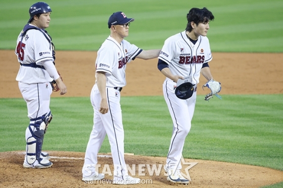 [포토] 4회 교체되는 두산 선발 곽빈
