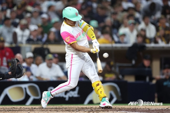 초중반까지 김하성의 방망이는 냉기를 유지했다. 3회 말 선두타자로 나선 김하성은 6구 승부를 펼쳤지만 변화구에 타이밍을 놓치면서 3루수 뜬공 아웃됐다. 이어 5회 말에도 볼카운트 1-1에서 시속 96.4마일의 하이 패스트볼에 1루수 쪽 빗맞은 플라이로 물러났다.