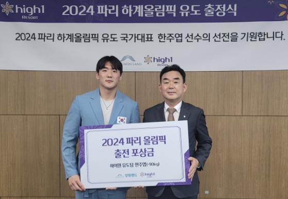 강원랜드는 지난 12일 오후 서울사무소에서 하이원스포츠팀 소속 유도 국가대표 한주엽 선수(남, 90kg급)의 2024 파리 하계올림픽 선전을 기원하는 출정식을 가졌다.