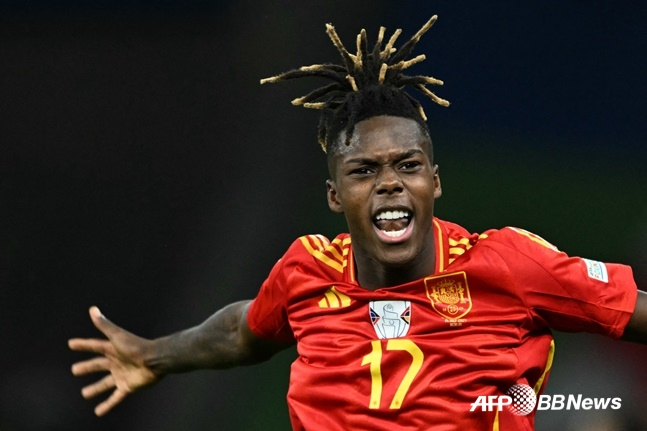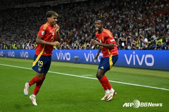 전반 2분 만에 스페인이 선제골을 터트렸다. 야말이 왼쪽 측면에서 중앙으로 돌파하며 시선을 끈 뒤 왼편에서 쇄도하는 윌리암스에게 침투 패스를 찔렀다. 윌리암스가 골대 반대편으로 침착하게 슈팅해 골망을 흔들었다. 야말의 대회 공격포인트는 1골4도움이 됐다.
