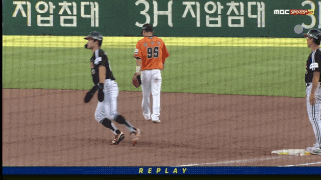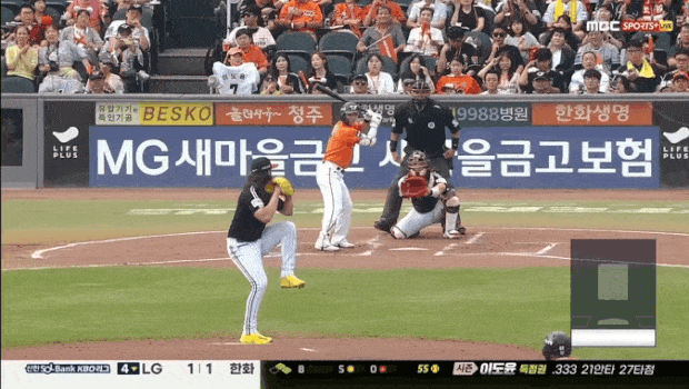 문제의 장면은 4회말 나왔다. 선두 타자 요나단 페라자가 안타를 치고 나갔고 안치홍은 3루수 방면 내야안타를 날렸다. 이어 채은성이 1타점 적시타를 날렸다. 1-1 동점.